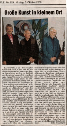 Am 16. Juli 2011 wurde in der alten Brauerei in Mannheim die Ausstellung von Gerd Reutter "Im Erdenreich: Ton und Bronze aus zwei Jahrzehnten" eröffnet. Hier können Sie dazu die Begrüßungsrede von Dr. Jochen Kronjäger lesen und die Fotos von Manfred Rinderspacher der Ausstellung anschauen.