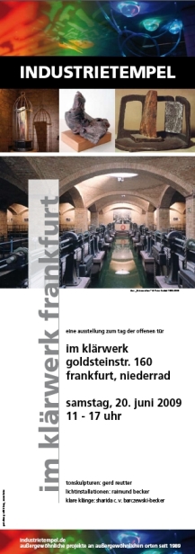 Zum Tag der offenen Tür 2009 stellte Gerd Reutter im Alten Klärwerk Frankfurt Niederrad aus - mit Lichtinstallationen von Raimund Becker (spirit of light) und "Klare Klänge" von Sharida C.V. Barczewski-Becker.