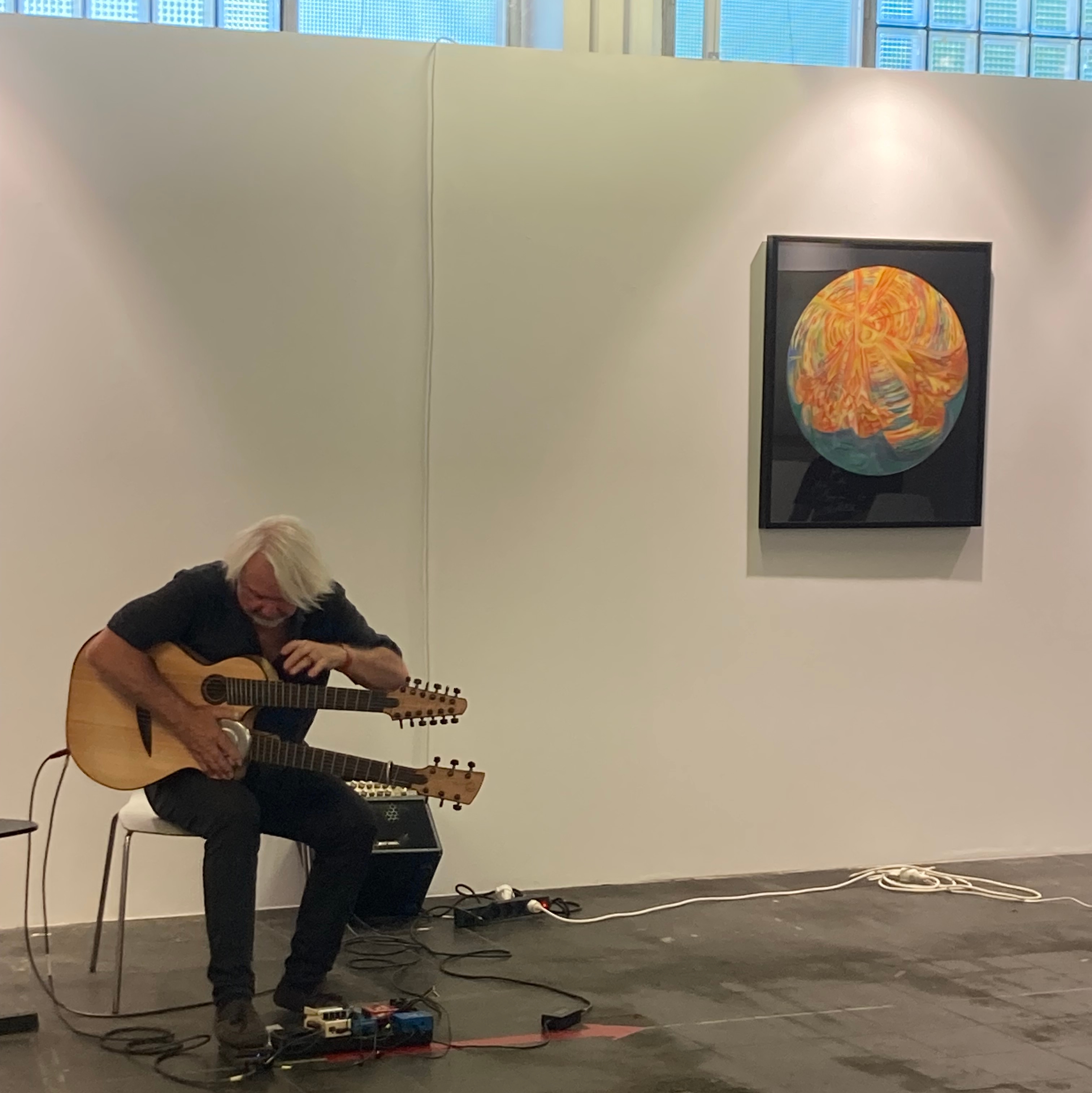 Während der Matinee zur Ausstellung am 29. Juni entlockte der Gitarrist und Komponist Claus Bösser-Ferrari seiner außergewöhnlichen Gitarre moderne Töne. Beide Künstler verbindet eine lange Freundschaft. Bereits in den 1990er Jahren waren beide gemeinsam im Rahmen eines Kulturaustausches in Sochi.