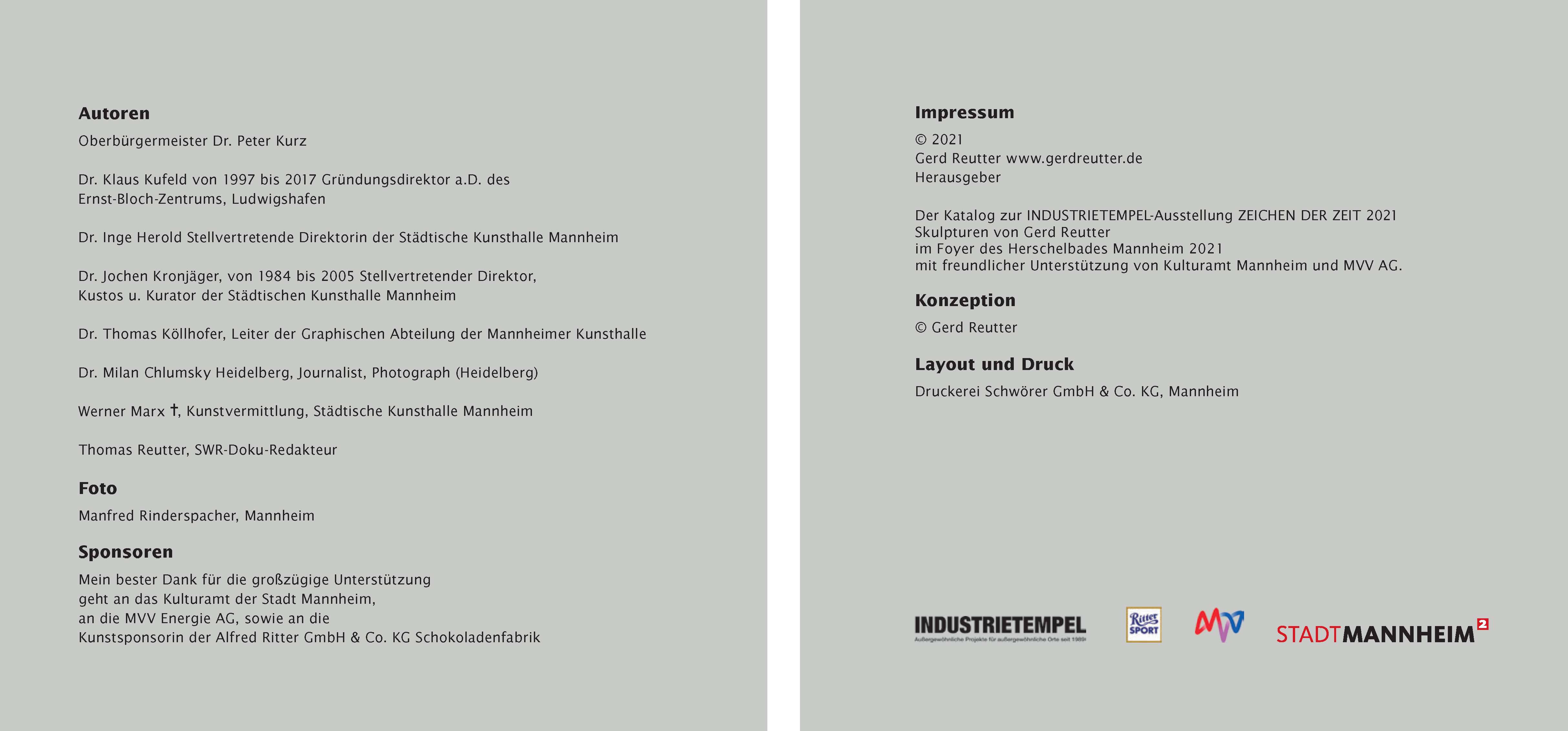 2021SKULPTUREN -ZEICHEN DER ZEITText: Dr. Peter Kurz, Dr. Klaus Kufeld, Dr. Milan Chlumsky, Dr. Inge Herold, Dr. Jochen Kronjäger, Thomas Reutter, Anastasia Schmidt, Werner Marx, Dr. Thomas Köllhofer