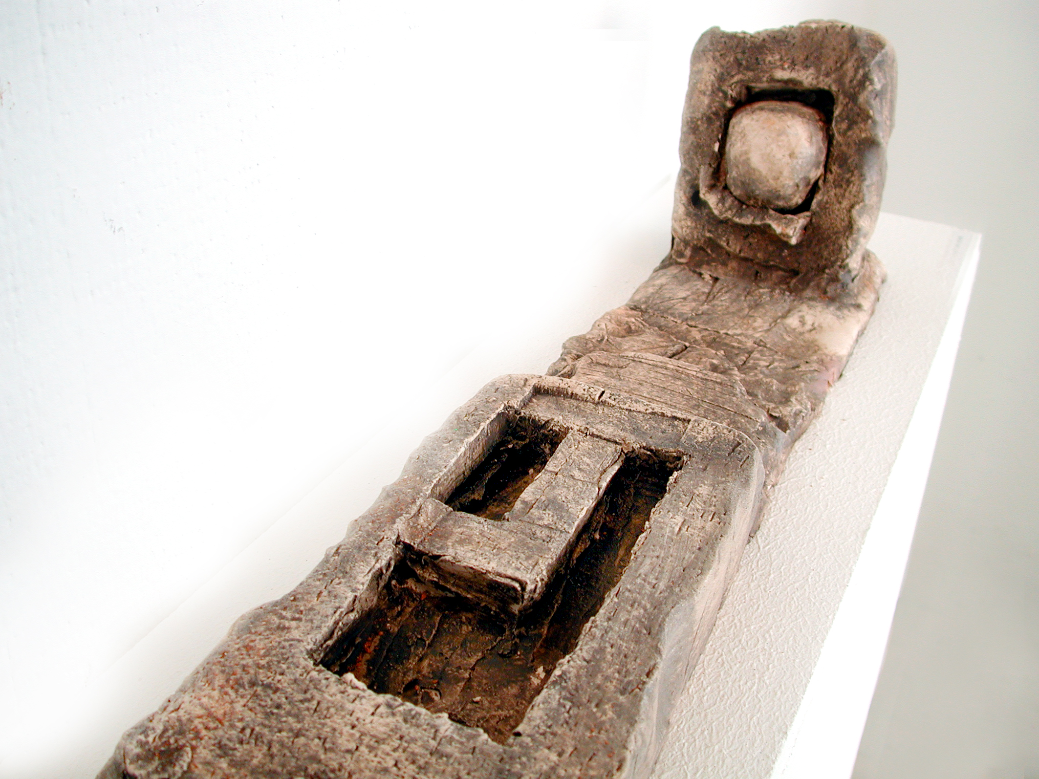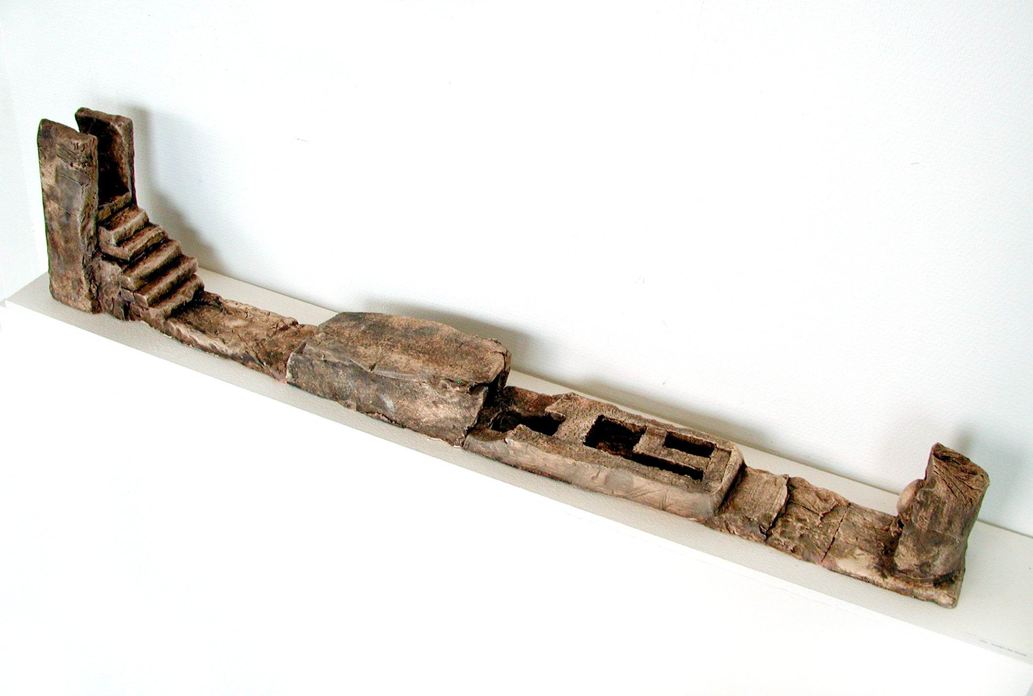 »Die 135 cm lange, nur 14 cm tiefe, zudem flach gehaltene Skulptur vermittelt spontan den Eindruck einer archäologischen Trouvaille: Sie wirkt wie ein herausgetrenntes Terrassenstück aus den Hängen der hoch in den Anden gelegenen, um 1450 gegründeten heiligen Inka-Metropole Machu Picchu. Zu ihr schreibt der Brockhaus: „Da in Terrassenbautechnik angelegt, fanden die vielen heiligen Bezirke, Plätze und Wohnbereiche ... auf engstem Raum Platz.“