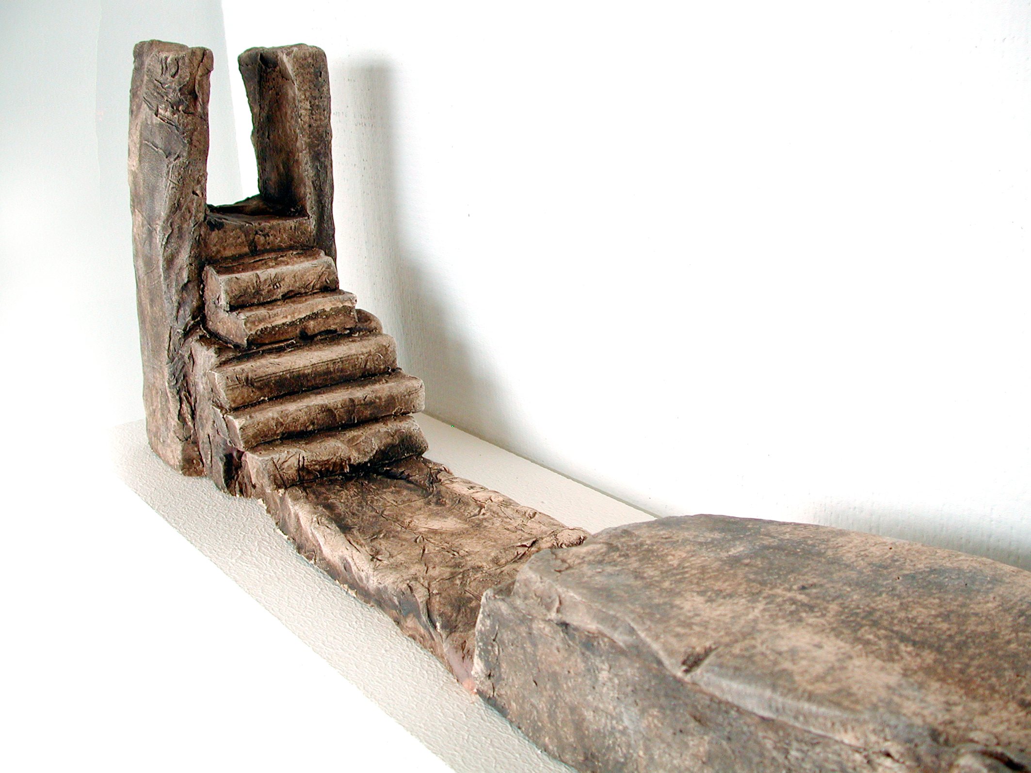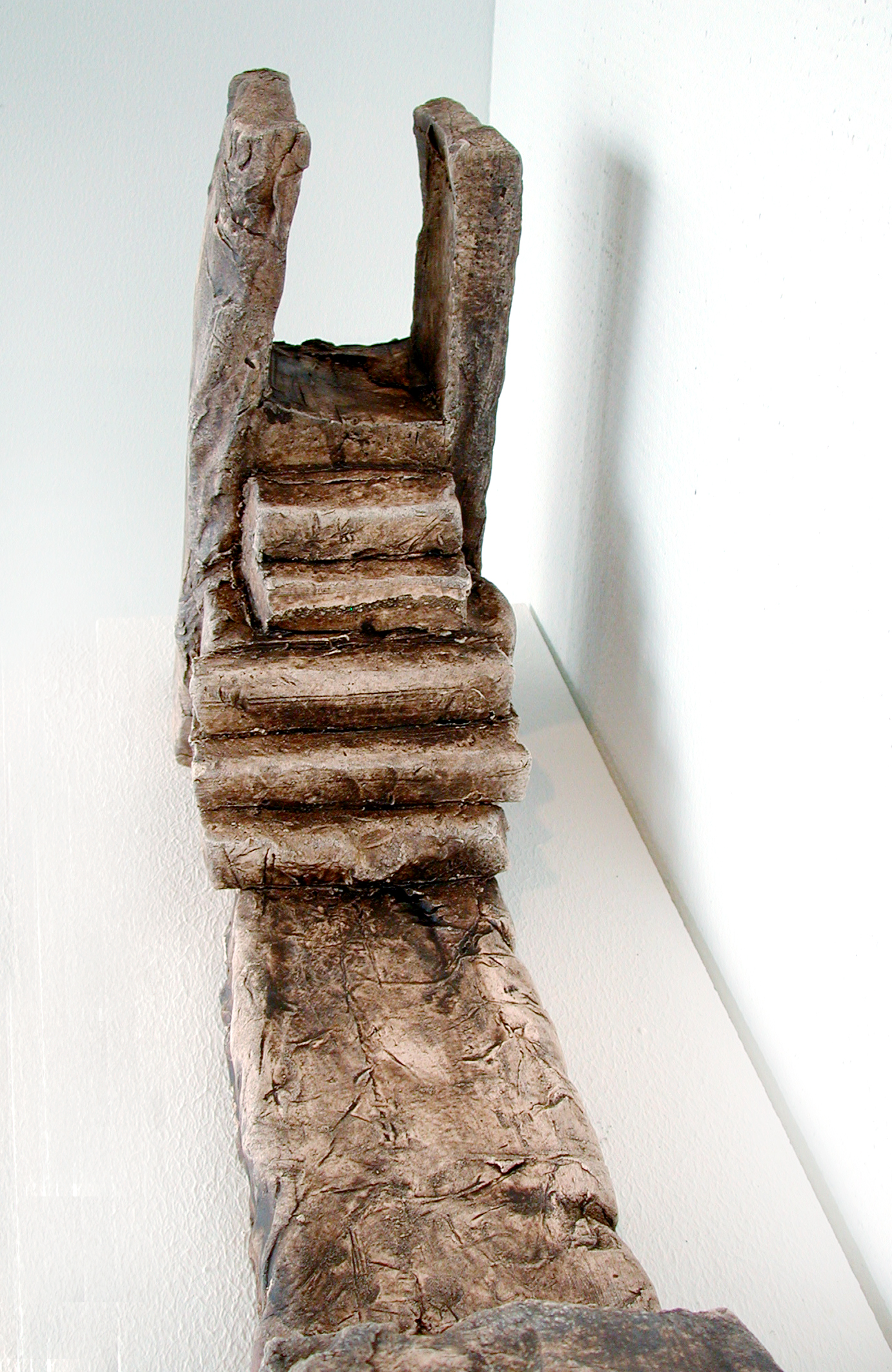 Die Skulptur hat unbestreitbar kultischen Charakter. Allein die Wangen zu Beginn der Treppe implizieren ein Leitsystem, durch das – wie durch eine Kimme – Lichtstrahlen auf die Kugel am Ende der Skulptur projiziert werden. Auch hier könnte wieder die Geschichte der Inkas eine Rolle spielen: Seit ca. 1450 wechselte deren Religion von der Vorstellung eines Schöpfungsgottes zu jener eines Sonnengottes, für den entsprechende Kultstätten zur Verehrung geschaffen wurden. Durch ihre beachtliche Größe musste die Skulptur in vier Teilen gebrannt werden – die sichtbare Addition ihrer Elemente betont zusätzlich den archäologischen Charakter dieses Werkes Gerd Reutters, d.h. eines in seinen Fragmenten existierenden harmonischen Ganzen.«