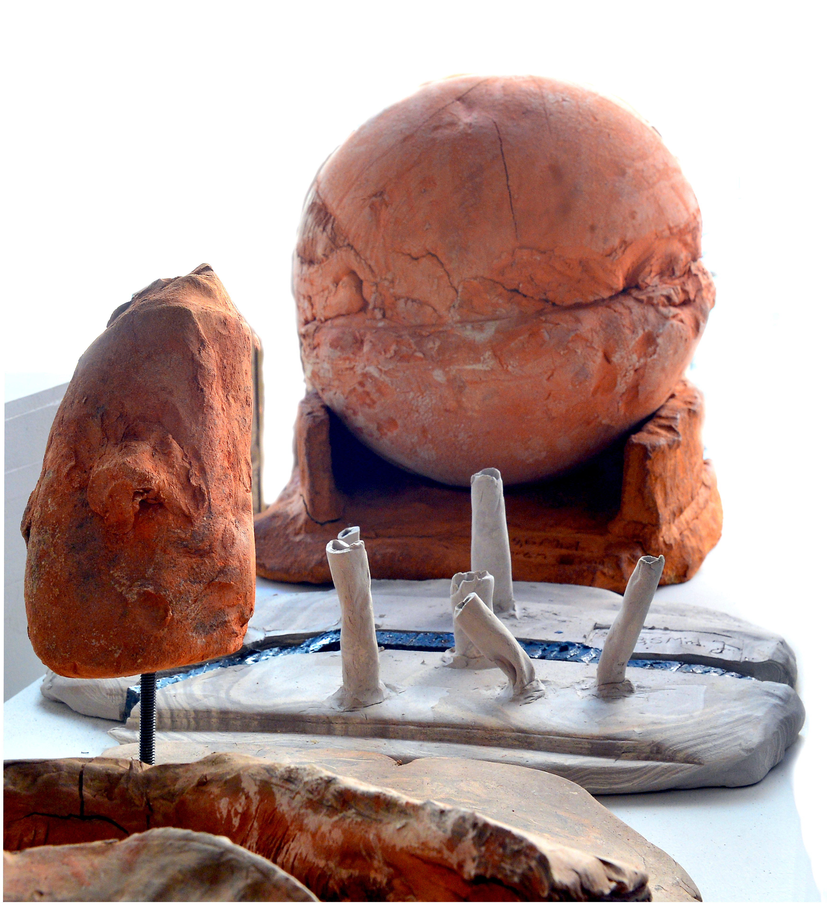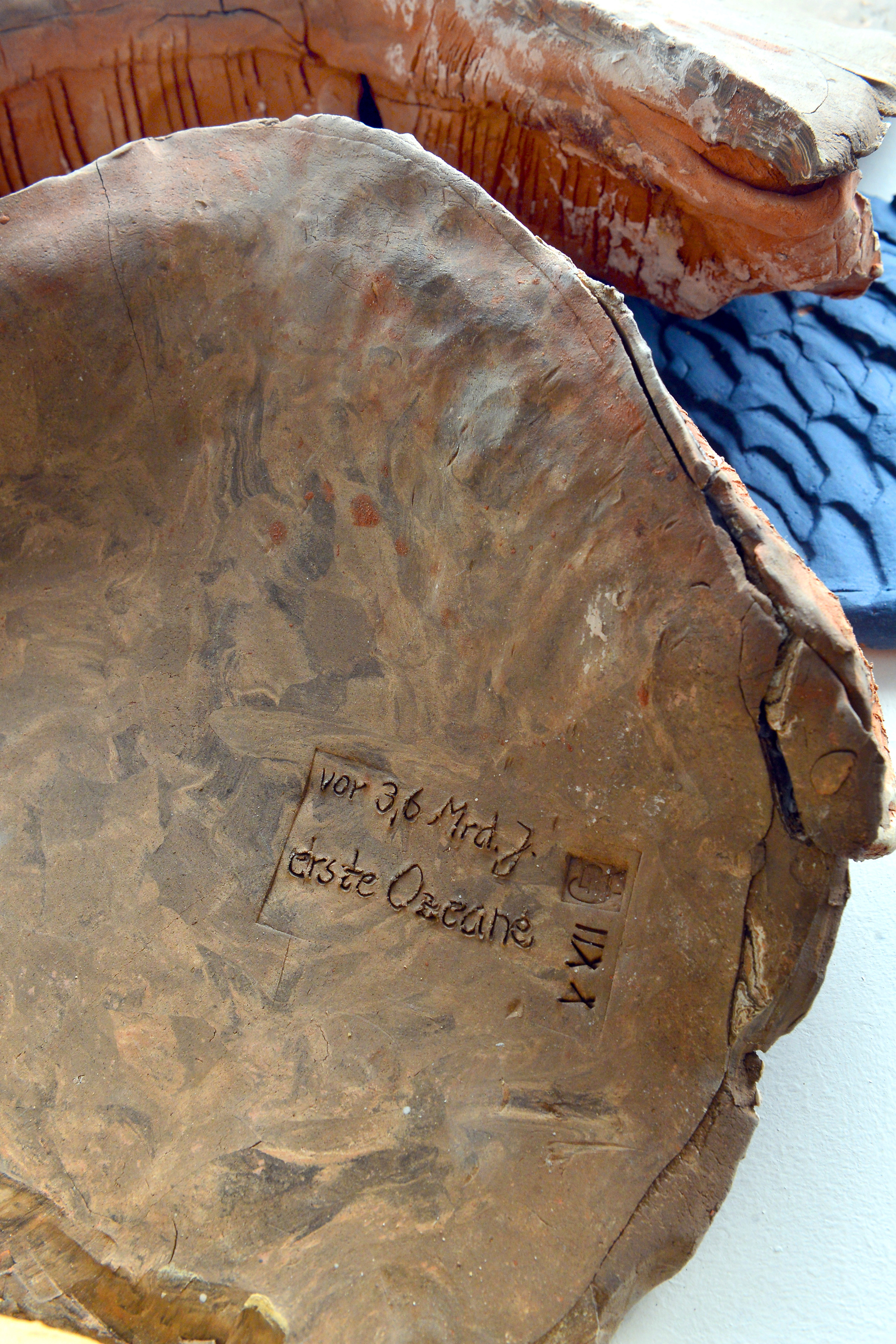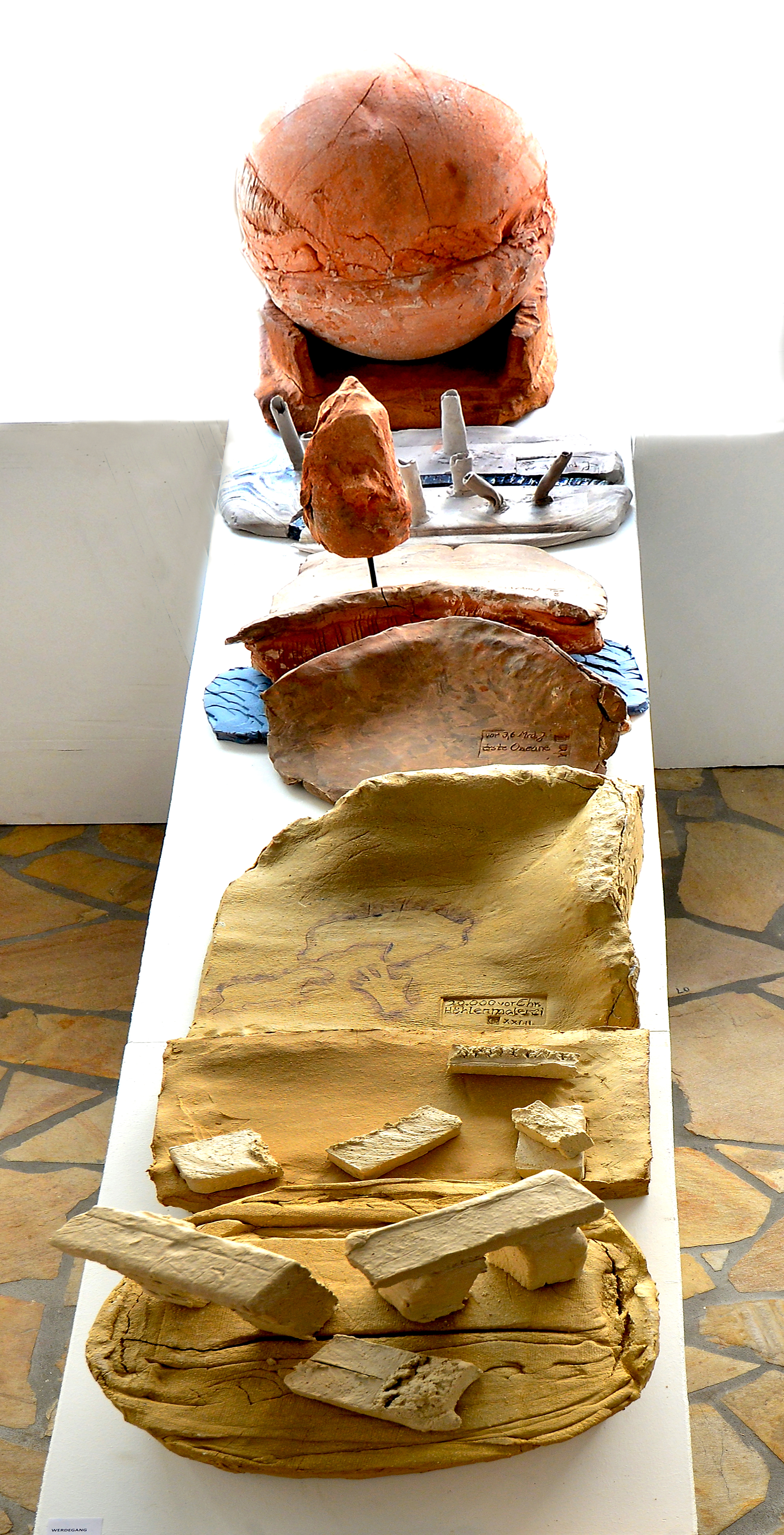In der Arbeit WERDEGANG setzt sich Gerd Reutter mit dem Entstehungsprozess der Erde auseinander und hält sieben Stationen aus diesem Prozess in jeweils einer Tonplastik fest.